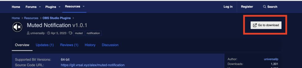 上記のリンクから「Muted Notification」のプラグインをダウンロードします。まずは右上の「Go To download」をクリックしましょう。
